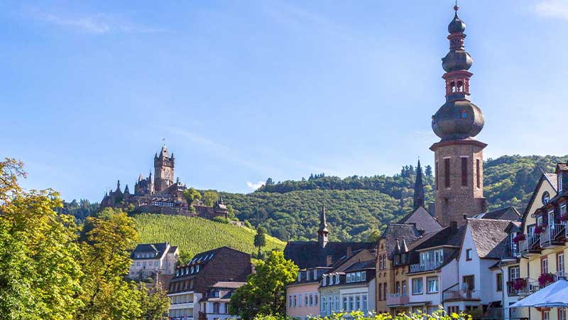 Efter en god frukost är det dags att utforska Moseldalen. Dess sluttningar är extremt branta, vilket medför att de druvor som växer här får oerhört mycket sol. Det är hemligheten bakom den fruktiga sötma som är så typisk för Moselvinerna. Vi gör en båttur på floden Mosel från Traben Trarbach till Bernkastel och njuter av den vackra dalen. Byn Traben Trarbach går helt i jugendstil och det är många av husen som inrymmer stora vinkällare. Här ifrån är det inte långt till Zell som blivit världsberömt för sitt vin ”Zeller schwarze Katz”. På eftermiddagen gör vi ett besök på en vingård där vi får prova 5 olika viner och höra mer om produktionen på gården.