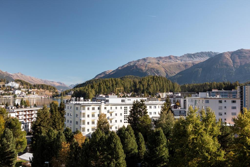 Hotel Laudinella är beläget i St. Moritz-Bad med utsikt över sjön och de omgivande bergen. Här ären underbar hälsoavdelning på femte våningen med basu och ångbad med en fantastisk utsikt. Som gäst har man även fri entre till Inomhuspoolen och spa avdelningen på Ovavera som ligger 100 meter från hotellet. På hotellet finns 5 restauranger, 2 barer och 1 take away-restaurang med terrass.