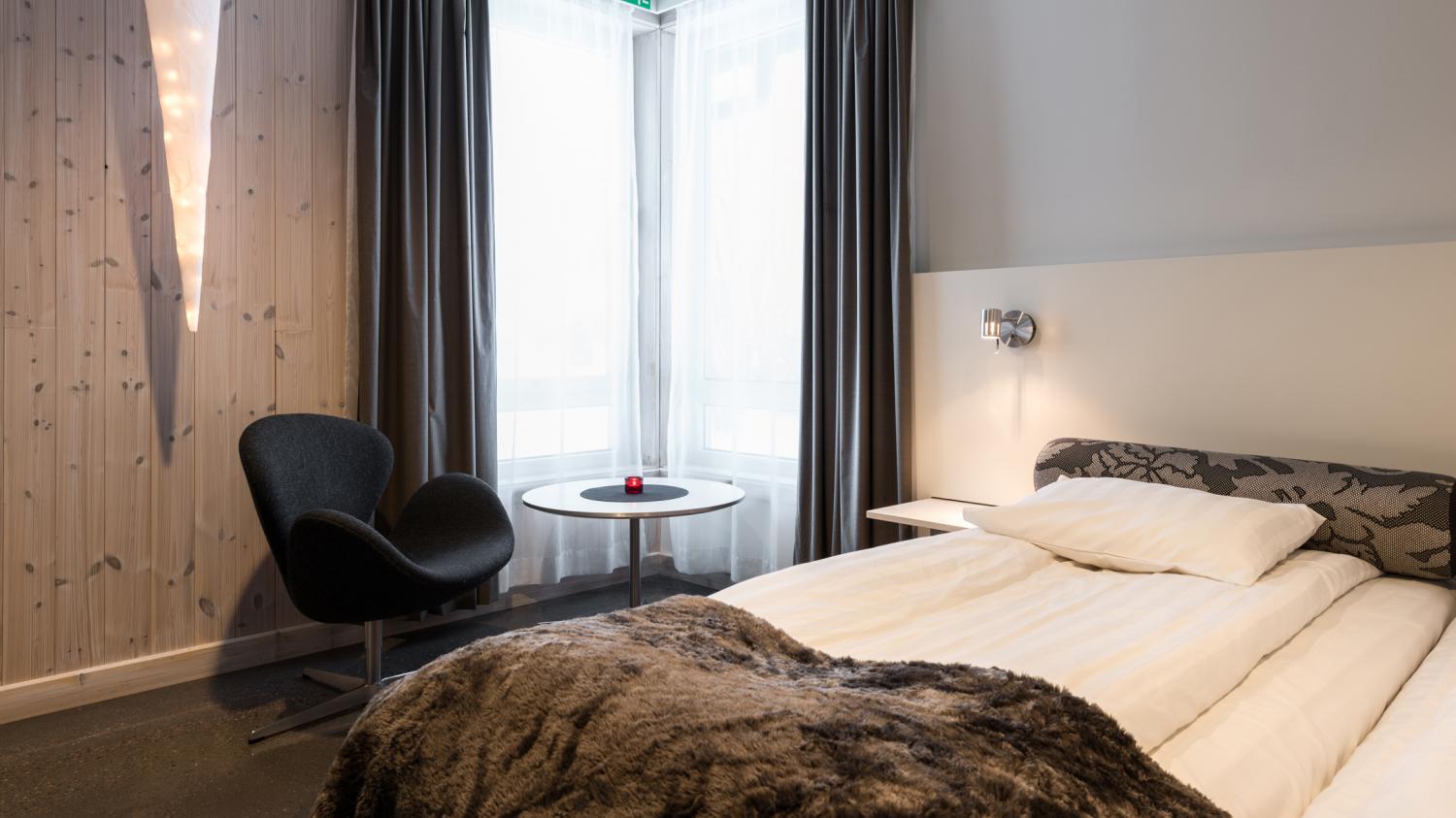 Hotellet har en gemensam restaurang, en mysig lounge och en isbar.