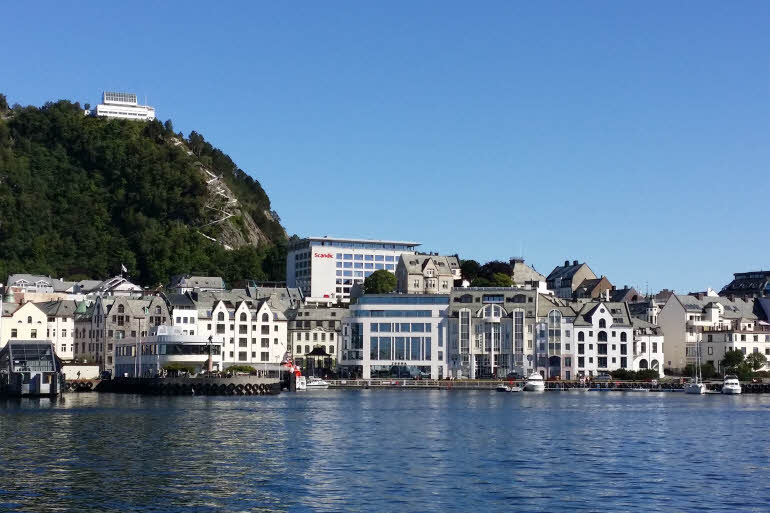 Efter frukost kör vi vidare norrut förbi OS staden Lillehammer. Vi siktar bland annat hoppbacken där man höll OS invigningen 1994. Vi kommer sedan in i Gudbrandsdalen där den sköna grönskan speglar sig i det klara, stilla vattnet. Vi för ett stopp vid Trollväggen, som har Europas största lodräta stup (1000 m) och är ett paradis för alla alpinister och fallskärmshoppare. Färden går sen ut till kusten vid Åndalsnes och följer denna upp till Ålesund som är Norges största fiskestad och breder ut sig över tre öar. Här ska vi bo en natt och äter även en gemensam middag.